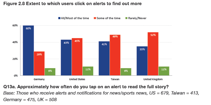Overall, only less than half of alerts (44%) said they tap on these to receive them to get further information, with Germans the most likely to click back to a story.