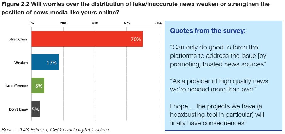 - 70% said worries over the distribution of fake/inaccurate news in social networks will strengthen their position, while…
