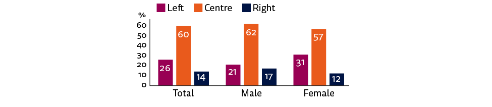 36 ‘All able to answer if left/centre/right’ results are as follows: centre 60%, left 26%, and right 14%.