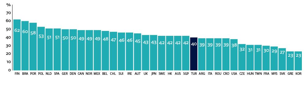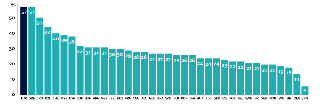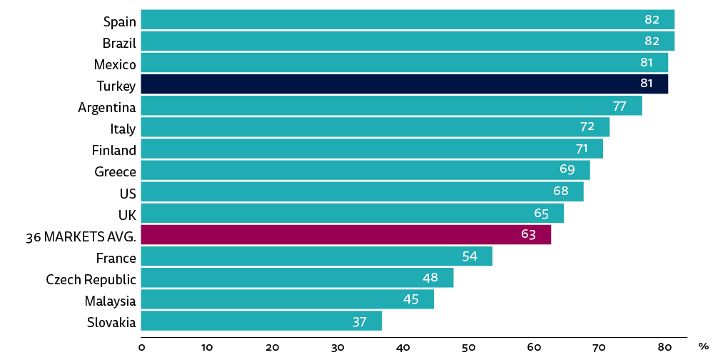 Please note that in Turkey (as well as Brazil, Mexico, and other countries with relatively low internet penetration) the samples are more representative of urban rather than national populations, which must be taken into consideration when interpreting results.