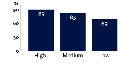 The survey indicates that respondents with higher household incomes are more interested in news than those with low incomes (see Fig 8). The total of those with a high income level who are ‘extremely’ or ‘very’ interested in news is 89%, while those with a low income is 69%. The fact that the survey is conducted online in urban Turkey may have influenced these results.