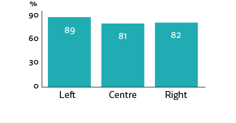 As to the level of news interest and political leaning, the survey indicates slightly more interest on the left than the right (see Fig 9). The total of left-wing respondents who say they are ‘extremely’ or ‘very’ interested in news is 89%, as against 82% among people on the right.