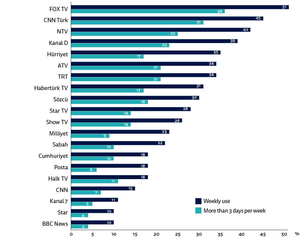 - Fox TV is the most preferred source, both in weekly usage and as a main source, followed by CNN Türk, NTV and Kanal D.