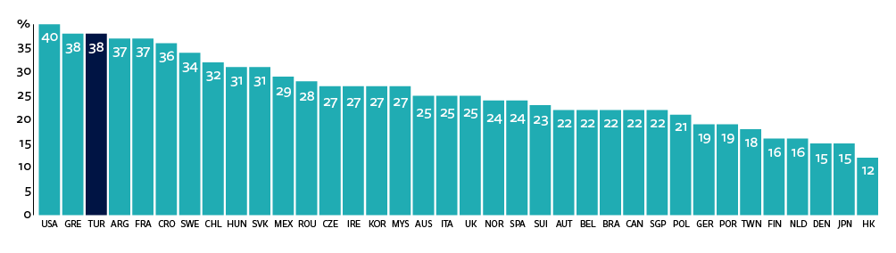 Turkey is in second place in European countries in the use of WhatsApp for news, behind Spain (32%), and in ninth place across all 36 markets. The significant point is that use of WhatsApp for news is very low in western countries, whereas it is very high in Latin American countries (Brazil 46% and Chile 39%) and some Asian territories (Malaysia 51% and Hong Kong 36%).