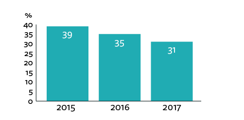 Apart from the closure of some titles, overall sales of other brands have not been much impacted at the news stand, but advertising revenues for newspapers have taken a hit. Printed media’s share of advertising revenues (14.8%) continued to decline in 2016, whereas digital advertising (24.2%) continues to grow and is now second only to television (51.2%).11