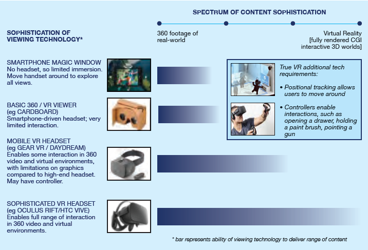 - Major technological challenges remain, particularly around the cost and consumer take-up of headsets. Production costs are still high, though technological developments and cheaper cameras have already lowered the entry point.