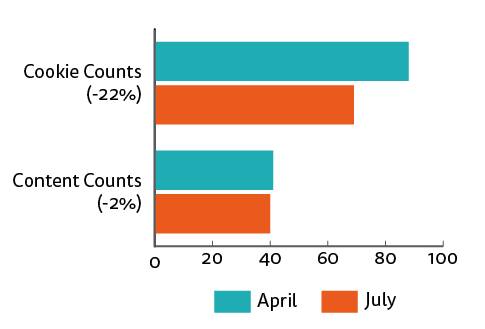 Figure 4. Content cookie use (April-July change in parenthesis)