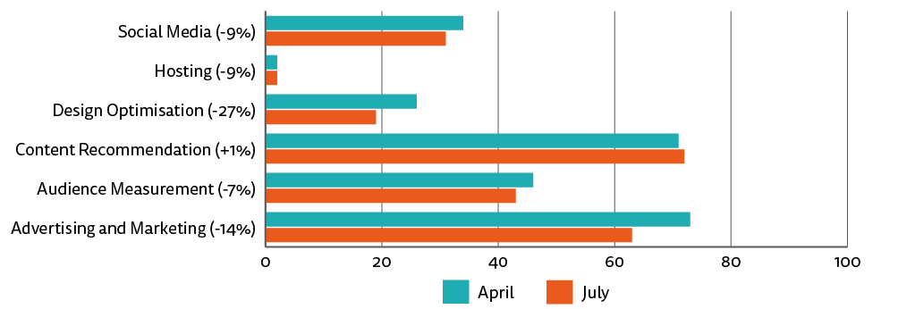 Figure 5. Content cookie use (April-July change in parenthesis)
