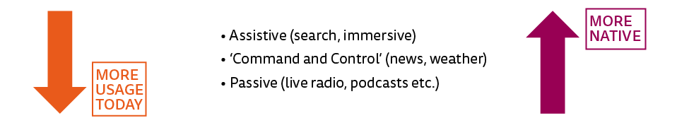 - For heavy users, voice is now the first and final contact point with technology (often replacing the smartphone or radio in the bedroom). This suggests that voice could become a critical gateway to media going forward.