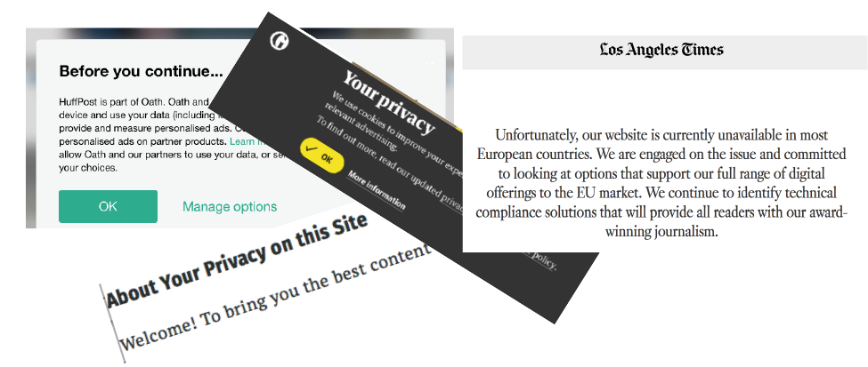GDPR forced publishers to clean up their permissions and processes (a good thing), but the wider benefits are harder to see. In practice, the messages and overlays were too confusing and complex for most people to engage with, so the majority just ticked ‘yes to all’. So unwanted emails continue, third party cookies continue to be served14 and consumers are still routinely targeted across the web programmatically. One unexpected side-effect was that GDPR also broke the internet with more than 1,000 US publishers, including the Los Angeles Times, choosing to block European readers rather than face the risk of massive fines. Nine months on, most publishers report little impact on their bottom line (even though many spent significant sums preparing for the new regulation).