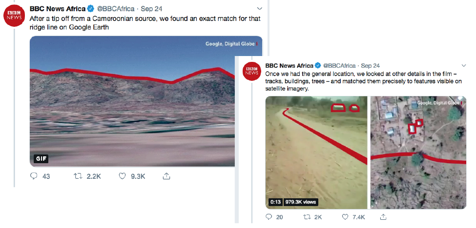 The past year has also shown how technology can help journalists uncover truth – something we’ve highlighted in previous predictions reports. Perhaps the best example came from BBC Africa Eye’s investigation into the killing of women and children in Cameroon. The team used open-source technology, collaborative human networks, combined with tools like Google Earth to show where and when the atrocity took place – and to finger the likely culprits. The resulting TV programme and twitter thread15 will deservedly win awards this year.