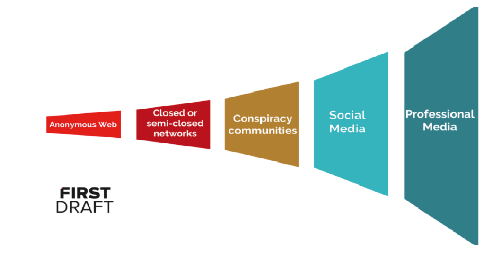 Fact-checking and debunking may need to be supplemented by a greater understanding of how stories are spread and by whom. First Draft research shows that misleading content is often discussed first in the anonymous web (4chan and Discord), then co-ordinated in closed or semi-closed networks (WhatsApp or Facebook groups), is then socialised in conspiracy communities (Reddit forums, YouTube channels), before being seeded in a co-ordinated way in public networks like Facebook, Twitter and Instagram. Broadcast media and newspapers can then often make the problem worse by picking up and amplifying these claims. In September, social media scholar dana boyd warned that the media are being ‘played’ and need to be more aware of the role they can play in giving credence to unfounded claims (e.g. that the Parkland students were ‘crisis actors’).17