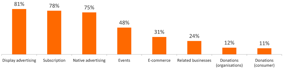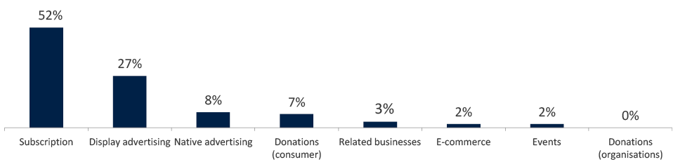 - Subscription and membership is the key priority for the news industry going forward. Over half (52%) expect this to be the MAIN revenue focus in 2019, compared with just 27% for display advertising, 8% for native advertising and 7% for donations. This is a huge change of focus for the industry.
