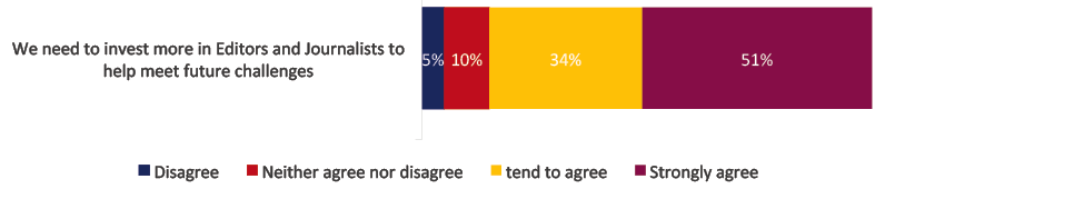 - Over three-quarters (78%) think it is important to invest more in Artificial Intelligence (AI) to help secure the future of journalism – but not as an alternative to employing more editors. Most see increased personalisation as a critical pathway to the future (73%).