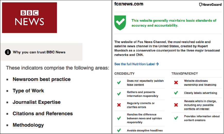 Trust Indicators for BBC News | Newsguard assessment of Fox News