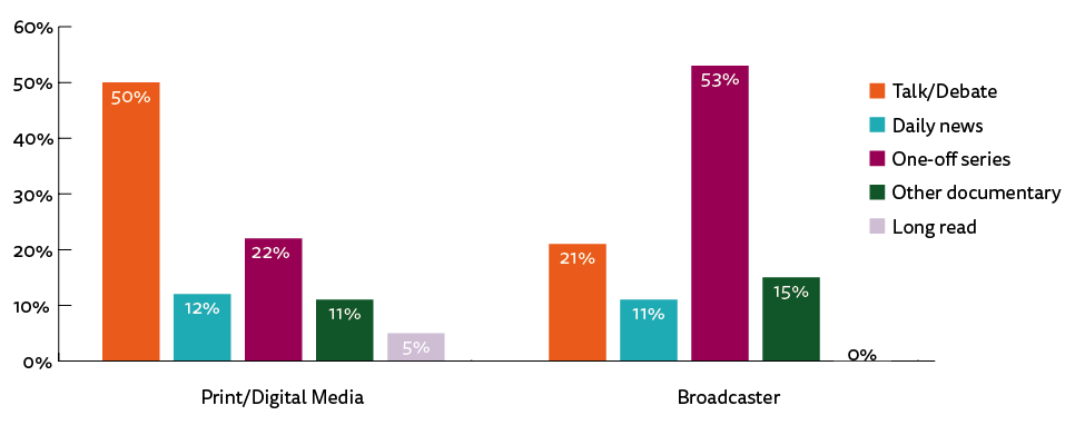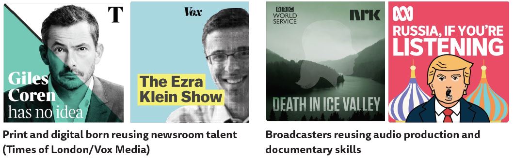 Our research shows that many publishers from print or digital-born backgrounds have focused on single-subject deep-dives that play to their strengths in analysis and explanation. Print journalists have enthusiastically embraced these new forms of storytelling, finding them a natural add-on to existing workflows. By contrast, many broadcasters have focused on producing micro-bulletins and redistributing existing radio programmes as podcasts. Where they have commissioned digital-born or native podcasts, these have often been aimed at younger and more diverse audiences that they are finding hard to reach through linear channels.