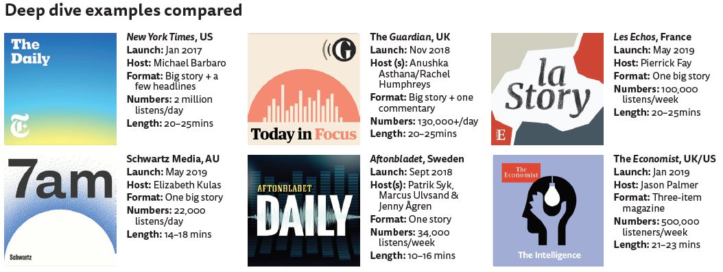 Publisher interest has grown following the success of The Daily from the New York Times, which has built an audience of 2m daily listens along with substantial annual revenues. Dozens of daily news podcasts have launched over the last 18 months.