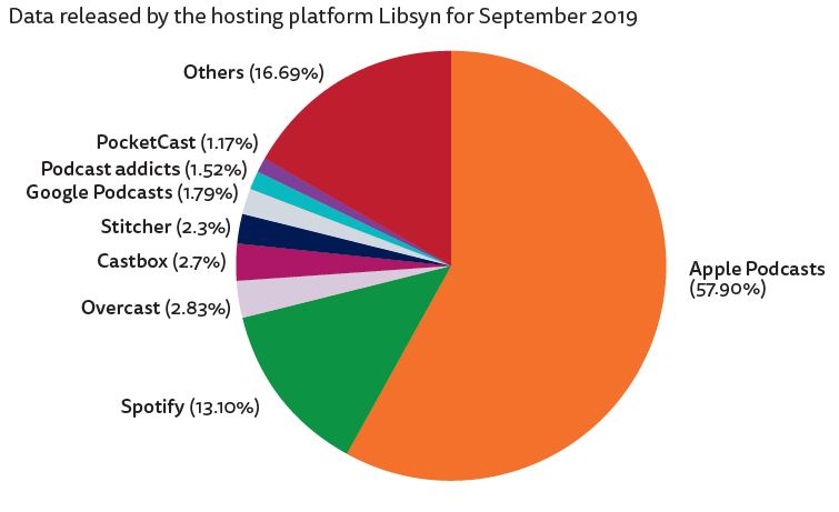 3 Consumption via the Libsyn network Sept. 2019 shows 57% usage devices, 13% from Spotify, and 2% Google.