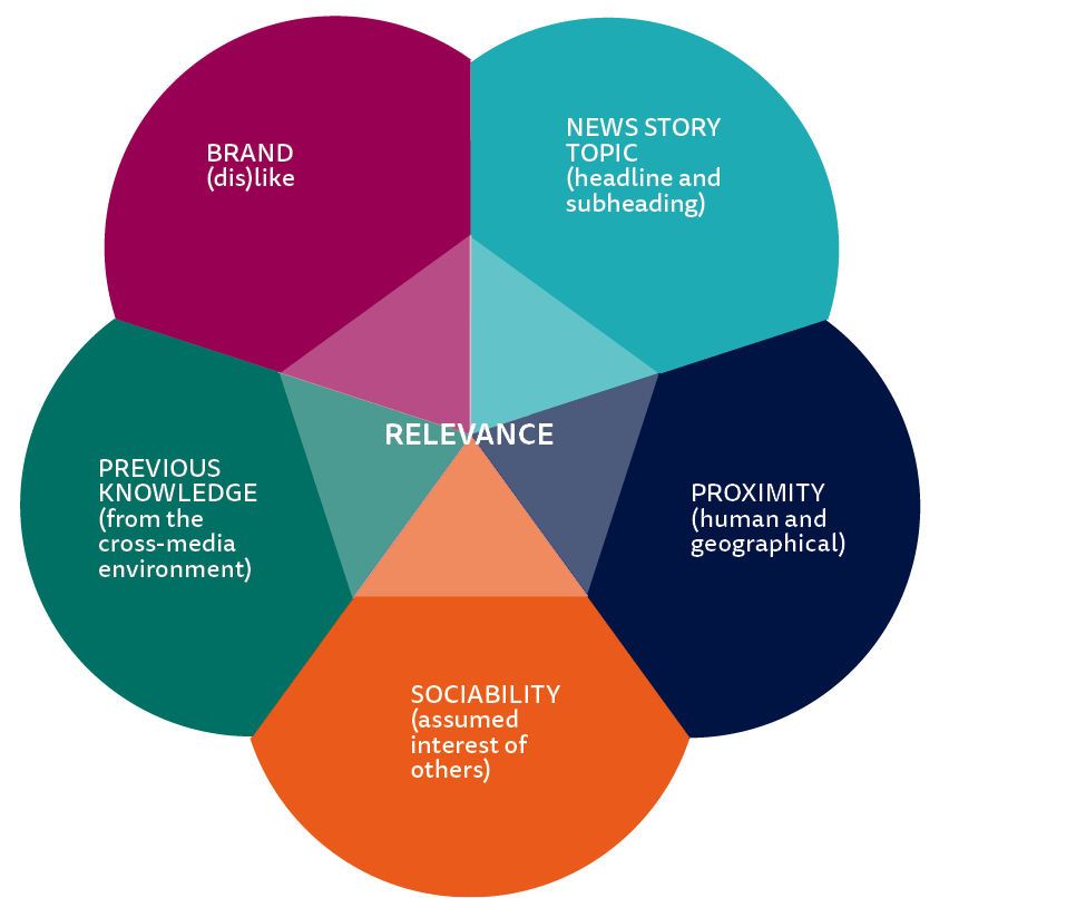 - Relevance is tied to sociability. It often originates in the belief that family and friends might take an interest in the story. This is often coupled with shareability – a wish to share and tag a friend on social media.