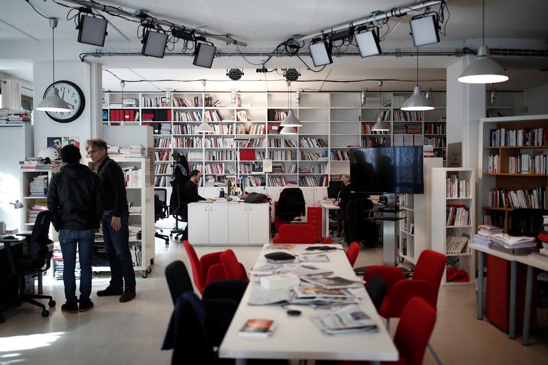 Journalists stand in the newsroom of the free and independent online media outlet Mediapart in Paris, France, March 12, 2019. REUTERS/Benoit Tessier