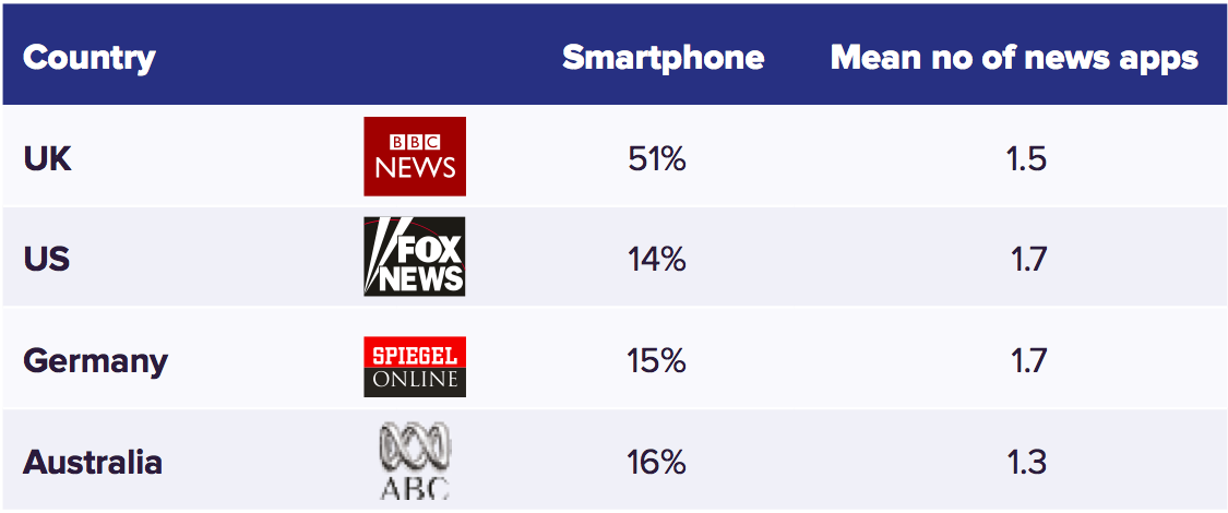 In the UK, over half of smartphone news users (51%) regularly use the BBC News app, the only country where we see this level of reach.