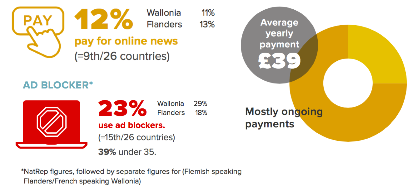Belgian news brands use various strategies to charge for online content including metered paywalls, premium content subscriptions and syndication.