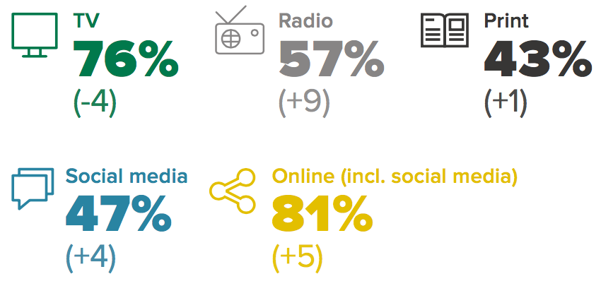 Public broadcaster NOS remains the most important offline news brand in the Netherlands. Starting in 1999 far ahead of competitors, NU.nl continues to be the most popular Dutch news website, although newspapers De Telegraaf and Algemeen Dagblad and broadcaster NOS have caught up over the past 15 years. Local news remains popular amongst Dutch audiences with regional newspapers ranking third in the list of top offline news brands. Regional TV and radio news also score relatively highly.