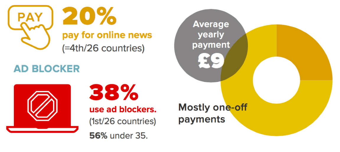 Poland has the highest level of ad-blocking in our survey at 38%. This could be attributed to news websites overloaded with ads, but it may also be driven by heavy usage of illegal video streaming services, which also carry extremely intrusive advertising. [69. https://variety.com/2015/digital/news/house-of-cards-season-3-pirated-with-china-top-country-for-downloaders-1201444023/