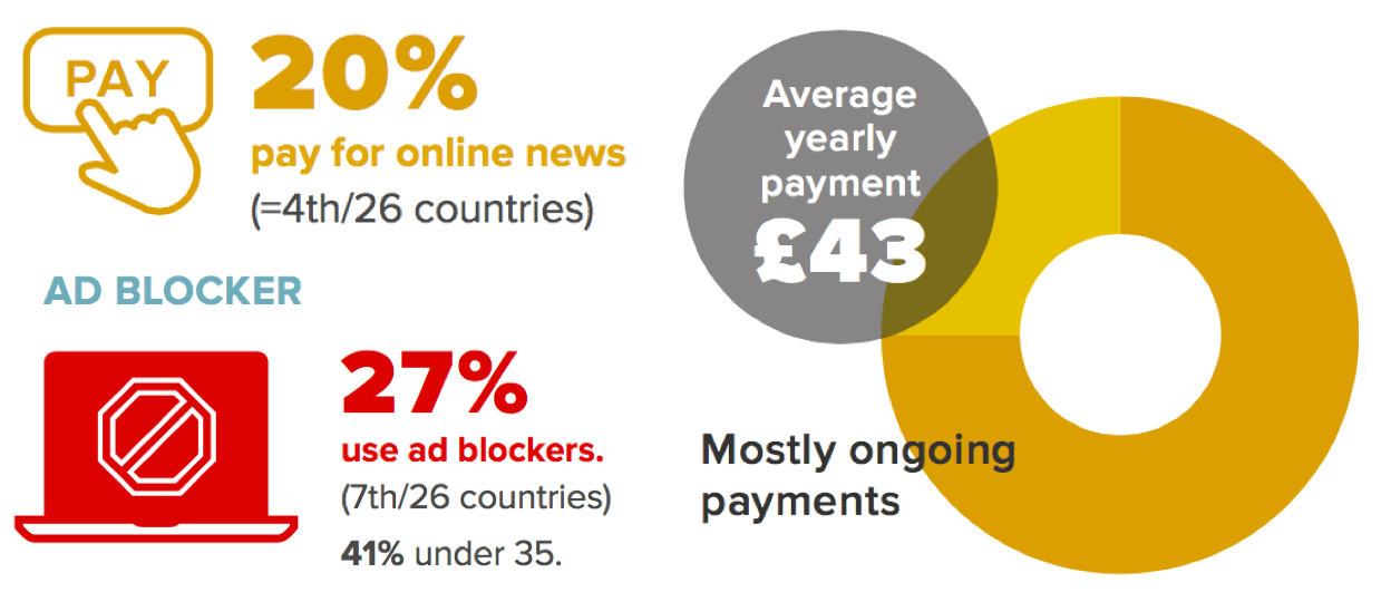 Many newspapers have some form of paywall for online news, which helps explain why Sweden has one highest rates of payment (20%) in this year’s survey.