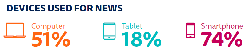 Official data (Subtel) shows that nearly 80% of all internet access is made from a mobile phone.1 Chile therefore leads the use of smartphones in Latin America and in our survey around three-quarters of respondents (76%) say they use mobile phones to access news weekly. A study from the main mobile phone provider in Chile shows that around 90% of smartphone users actively use Facebook, and 85% use Google, YouTube, and WhatsApp. These numbers help explain why Facebook and WhatsApp are the most important social media and messenger brands for news access. Most broadcast brands have started to use WhatsApp voice messaging to engage with their audiences, particularly radio stations as such BioBio, Cooperativa, and ADN.