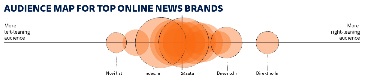 In terms of online news, the top brand (Index.hr) is a digital-born news portal preferred for its strong (centre-left) opinions. Legacy media companies are also popular, notably the website of a tabloid newspaper 24sata which is valued by its audiences for amusing and entertaining content. By contrast Jutarnji.hr is recognised by its users as the best for understanding complex issues.