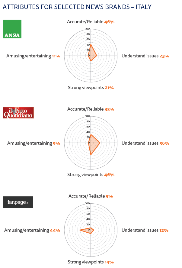 Base: All that used Ansa/Il Fatto Quotidiano/Fanpage in the last week: Italy = 422/308/163.