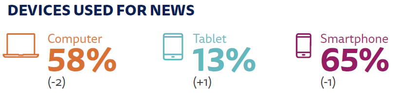 Overall trust in the news remains lowest among the countries surveyed, even if some (JTBC) have had their reputations enhanced by their pursuit of political corruption. The small difference between overall trust and trust in the news I use, relates to the heavy use of portals, where people often don’t remember specific news brands.