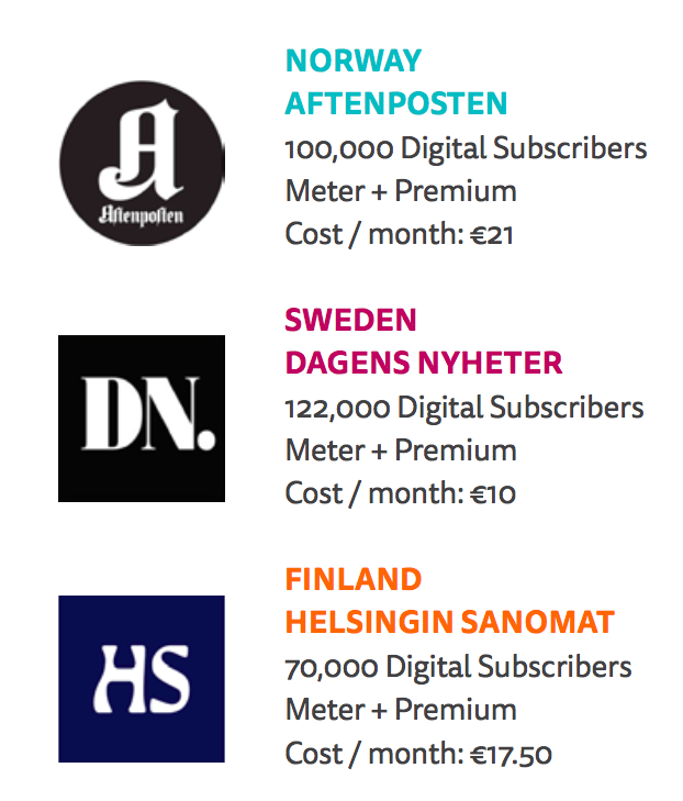 Many Norwegian newspapers use a hybrid paywall model (a combination of a monthly page view limit and some premium content) supported by data driven editorial and marketing teams looking to convert users. Using these techniques, AftenPostenreached 100,000 digital subscribers in December 2017 after just two years.