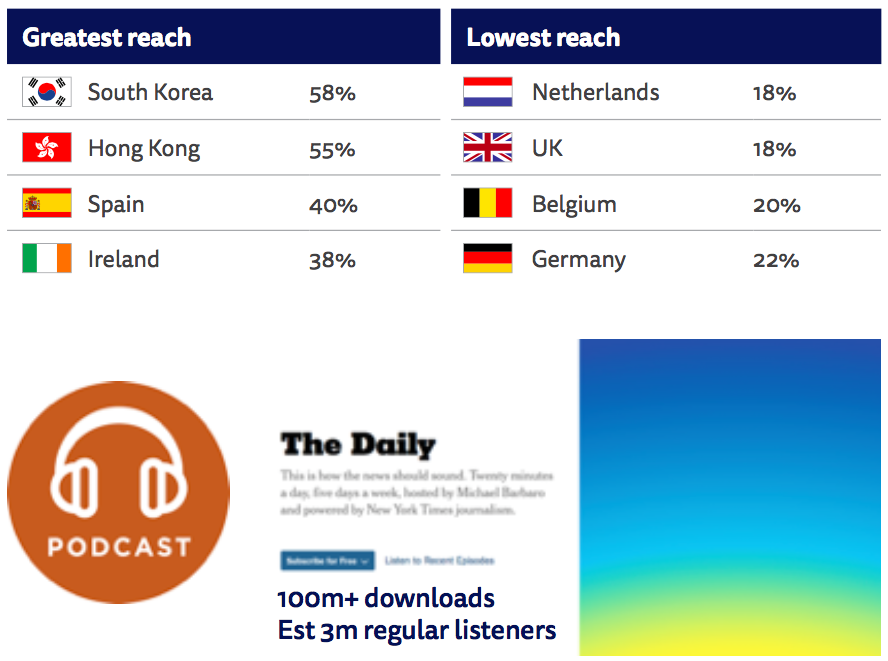 One further driver of on-demand audio growth has been the emergence of voice-activated speakers. These allow access to existing podcasts as well as new formats such as automated news audio briefings. Media companies like Quartz are also developing apps (or ‘skills’ as they are known) that allow conversational interaction with the devices.