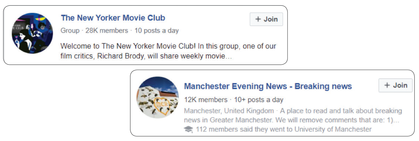 Local Facebook groups have been another new way to share and discuss content and to build community. Reach plc, which owns hundreds of local newspapers in the UK, curates many such discussion pages, including one around breaking news in Manchester that has 12,000 members.
