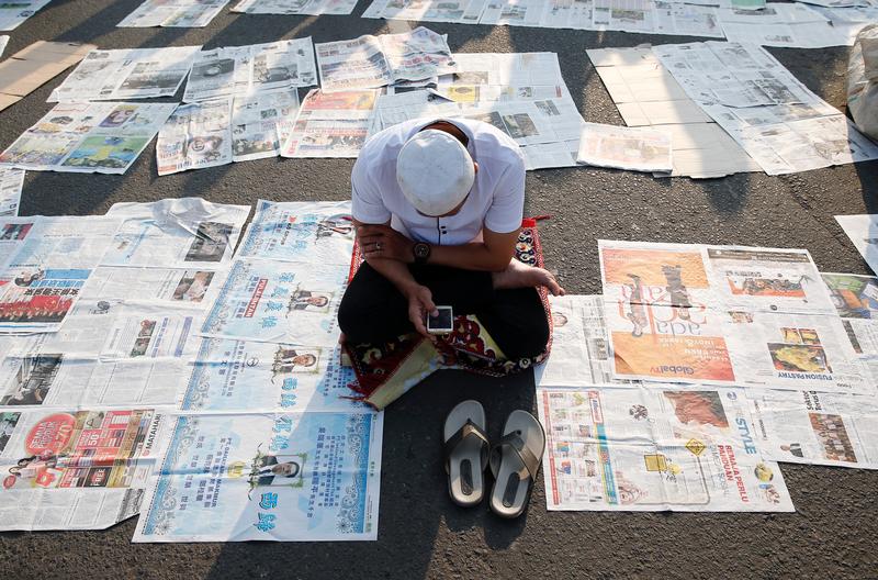 A vendor wearing a protective face mask reads a newspaper, Srinagar, September 7, 2020. REUTERS/Sanna Irshad Mattoo