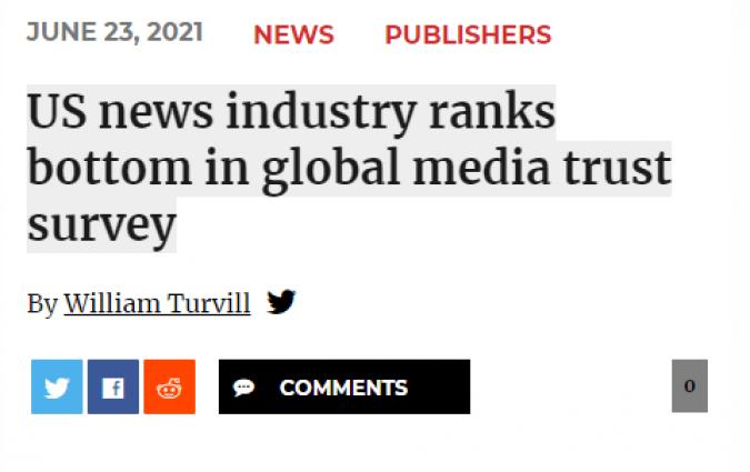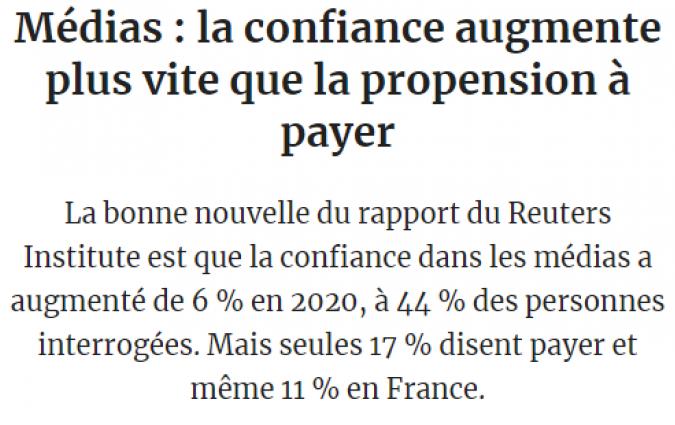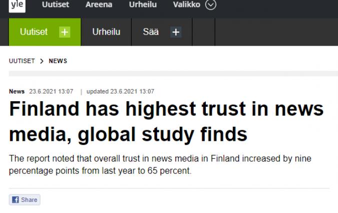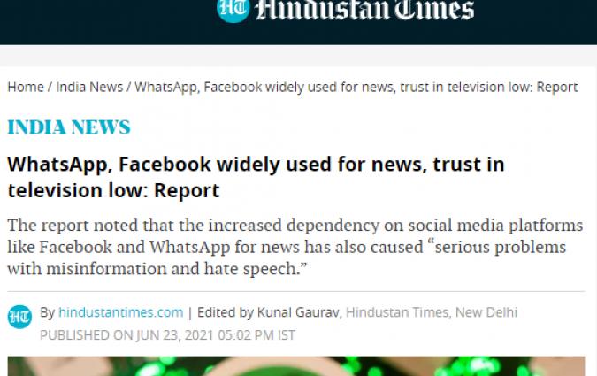 The Reuters Institute in the News In the news Les Echos French financial daily covers our Digital News Report 2021 In the news Press Gazette Media news site explores DNR findings on trust in the media In the news Press Trust of India via NDTV Indian news agency highlights DNR21 research on most trusted brands In the news Independent In the news Diário de Notícias Article on our Digital News Report in Portuguese daily In the news YLE Finnish public broadcaster covers our Digital News Report 2021 In the news Mint Indian digital news site covers our Digital News Report 2021 In the news Maldita.es Spanish fact-checking website article on our DNR In the news Süddeutsche Zeitung German daily covers our Digital News Report 2021 In the news Hindustan Times Article on our Digital News Report featured in English-language daily In the news Journalisten Danish media news outlet covers our DNR 21 In the news Meedia German media website covers our Digital News Report 2021 In the news Il Sole 24 Italian business daily covers Trust in News project report In the news European Federation of Journalists EFJ covers report from our Trust in News project In the news Journalism.co.uk Journalism news site covers report from our Trust in News project In the news CNN CNN references 2018 Digital News Report in article on misinformation in Japan In the news MediaTalks Brazilian media news site covers the second report of our Trust in News project In the news El Pais Research Fellow Sílvia Majó-Vázquez interviewed on social media use in Spain. In the news El Diario Research Fellow Sílvia Majó-Vázquez interviewed about research on toxicity on Twitter In the news Mirror Reuters Institute research included in analysis of the British Commission on Race and Ethnic Disparities report In the news Nieman Lab Journalism news site covers fellowship paper on public editors by Kathy English Load More
